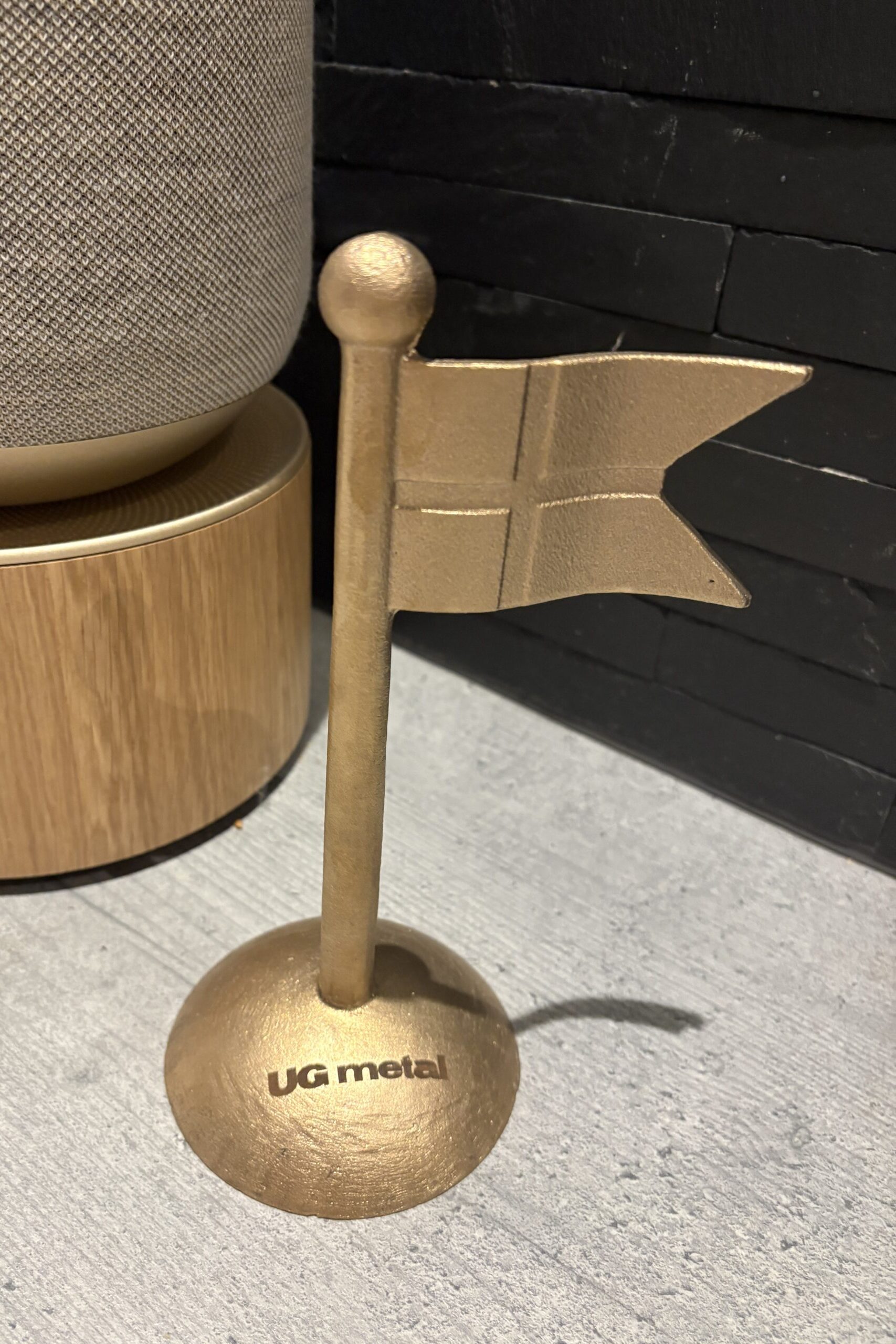 Hver eneste detalje er gennemtænkt – fra det solide bronzegrundlag til flagets subtile linjer og tidløse udtryk.
