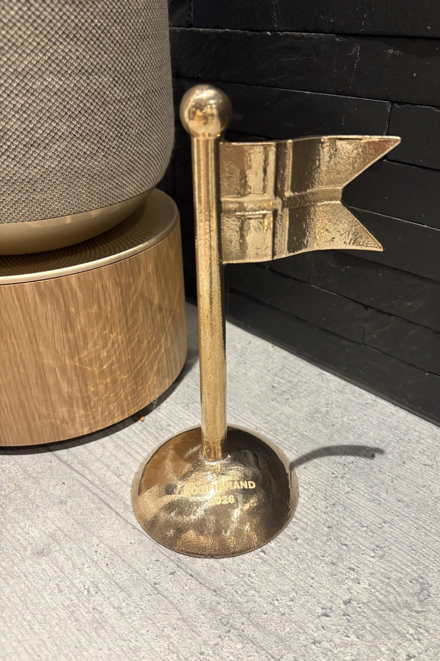 Hver eneste detalje er gennemtænkt – fra det solide bronzegrundlag til flagets subtile linjer og tidløse udtryk.